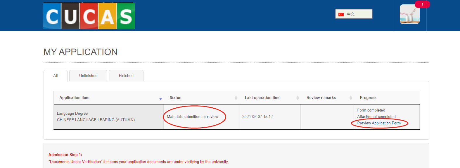 9、Please upload the materials (items with “*” is necessarily), and click “Next”.