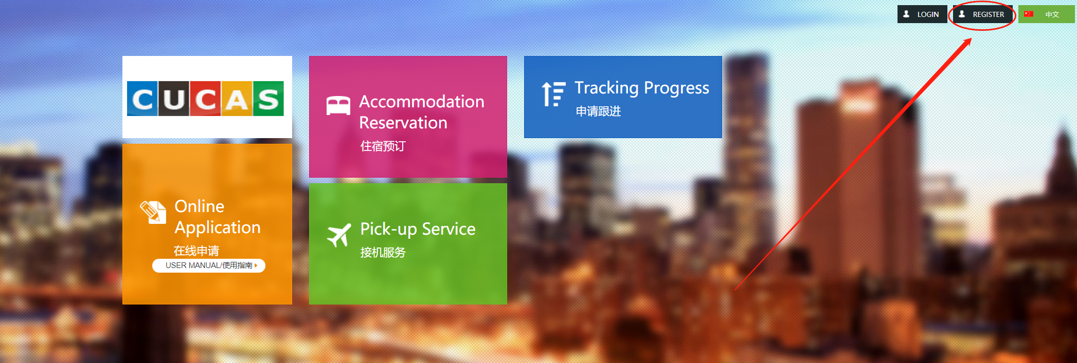 1、Open the website http://cie-registration.dgqinyehang.com/en/ ,and click the “Register” at the top-right corner. You can start your registration.